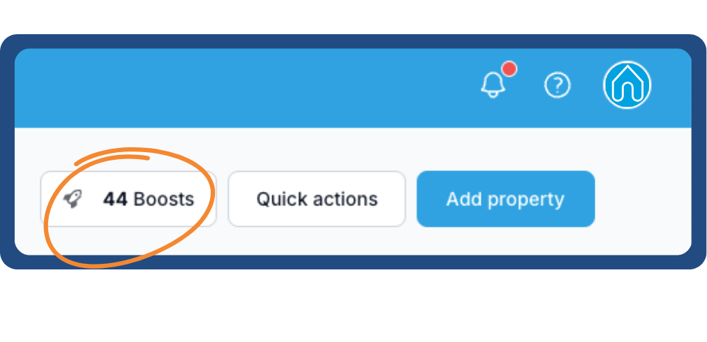 To buy boosts, click the boost button next to the 'Quick actions' and 'Add property' buttons on the properties page and follow the payment wizard.