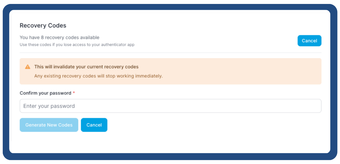For security purposes, you’ll need to re-enter your password to regenerate the codes: