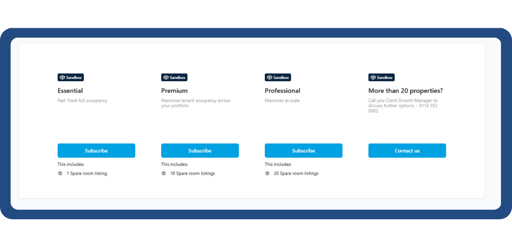 Once inside, you’ll land on the Spare Rooms feature page, where you can select the package that best fits your requirements.